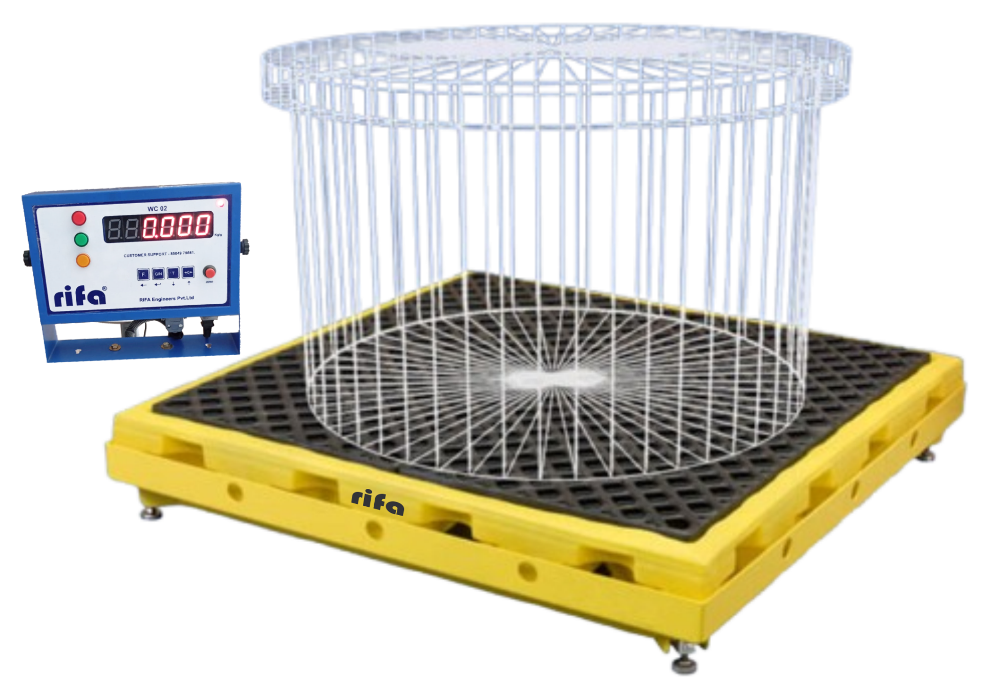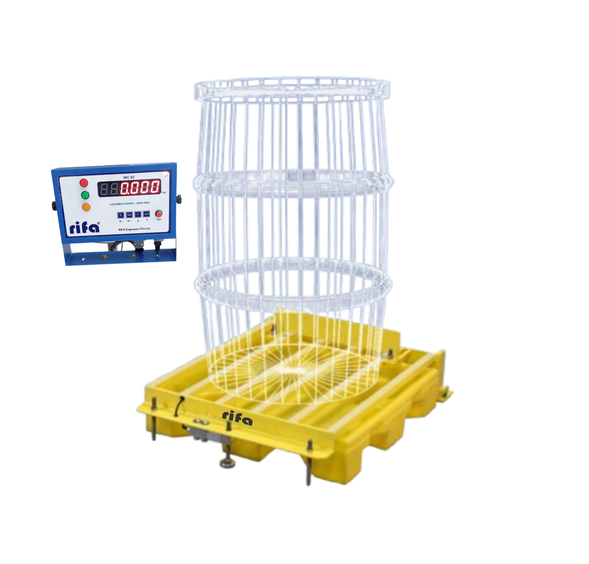 A platform scale with a fitted drum for weighing loose or irregular items like grains, vegetables, and small parts. Prevents spillage while ensuring accuracy.